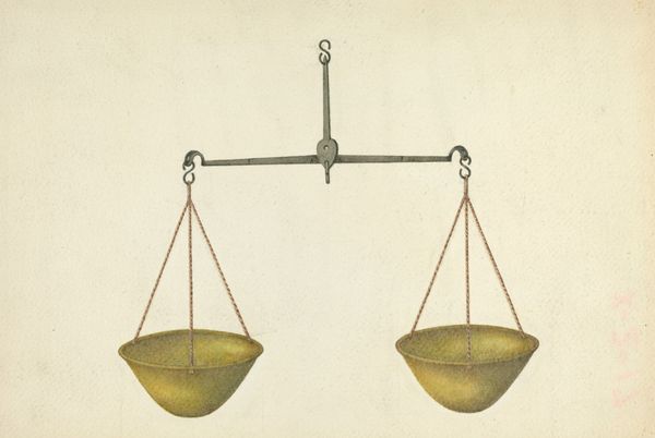 Editor: Here we have Henry N. Hooper and Company's "Balance Scale," crafted between 1840 and 1860 from brass and other metals. The elegant symmetry feels almost neoclassical. What layers do you see in this piece? Curator: This scale, beyond its apparent function and aesthetic appeal, becomes a potent symbol when viewed through a lens of social justice. How does it make you consider power? Think about who might have used such a precise instrument during that time, and for what purposes. Editor: I hadn't considered it in that way initially. I suppose I was focused on the beauty and form, but yes, weighing wasn’t just for ingredients – it was used in trade, potentially exploitation. How does the American context shape your view? Curator: Precisely. The mid-19th century was marked by profound inequalities, think slavery. Even in a seemingly neutral object like this scale, one can trace the legacy of those power imbalances. It's not merely a tool, but a reflection of its societal context. Do you see how geometric abstraction of shapes interacts with utility? Editor: I do, the shapes, the materials… even something meant to be purely objective reflects those societal dynamics. What did Hooper and Company intend by creating such a piece? Curator: Well, their intentions are less relevant than the cultural reality they inhabited. This scale represents their interpretation and the potential usage. It's a conversation between intent and impact. This becomes particularly salient given the ongoing dialogues about representation, fairness, and historical accountability. Editor: So, seeing art as an active participant in societal dialogues gives it a new voice. Thank you. Curator: Indeed. It prompts us to critically examine our present through the looking glass of the past. A simple scale holds much more weight than initially perceived.