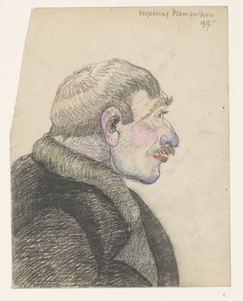 This is Julie de Graag’s 1917 portrait of a 37-year-old man named J.H., made using India ink and graphite. Immediately striking is the rigorous, almost architectural approach. De Graag uses closely spaced vertical lines to define the subject’s suit, contrasted by the swirling curves that suggest his hair and facial features. Note how the linear elements aren't merely descriptive but construct the form, creating a structured yet softened image. This use of line and form is reminiscent of early 20th-century explorations into abstraction, where the essence of a subject is captured through simplified, geometric shapes. Consider too how the texture, achieved through delicate applications of ink and graphite, adds depth and invites closer inspection. The formal elements of line and texture invite reflection on how the artist sought to reconcile the abstract with the representational.
