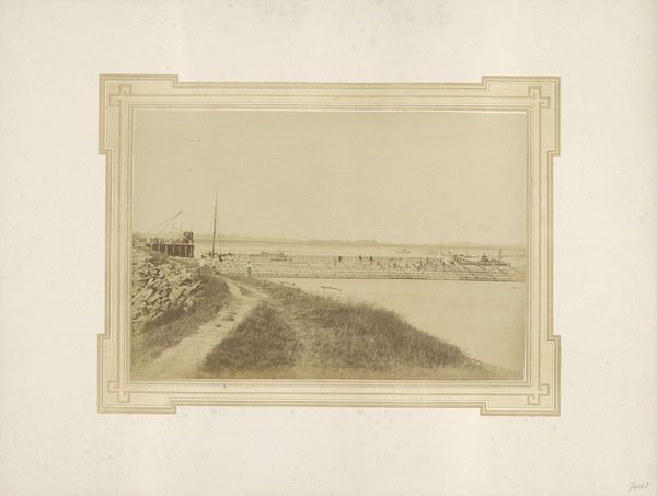 This photograph, "Construction of the abutment and the river pier of the bridge over the Oude Maas on the right bank near Spijkenisse," was taken by Arnaud Pistoor & Zoon in August 1900. What strikes me is the way the cool grey tones, are not mournful but alive, a full range of light. I can imagine the darkroom, the smell of chemicals, the patient work of coaxing an image from the silver. Look at the lower part of the frame, at those twin railway tracks running into the distance. They're more than just infrastructure; they speak of journeys, connections, and potential. You can almost feel the weight of the unseen engine, the promise of movement, the anticipation of what lies beyond the horizon. It makes me think of Eugène Atget, who photographed Paris with a similar sense of melancholic beauty. It's a reminder that art is always in conversation, a continuous exchange of ideas across time.
