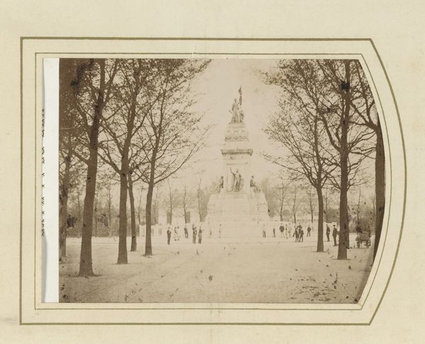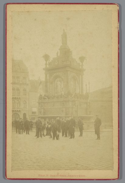 Pieter Oosterhuis captured this photograph of the decorated arch on Thorbeckeplein in Amsterdam during the Aprilfeesten of 1887. Notice the arch, adorned with garlands and flags, symbols of celebration and national pride. The arrangement of wreaths harkens back to ancient Roman triumphal arches, celebrating military victories and imperial power, a tradition that has been adopted and adapted across Europe. Consider the wreath, a motif laden with meaning through the ages. In antiquity, wreaths of laurel or oak leaves signified triumph and honor. The presence of such wreaths here evokes a similar sense of admiration and respect, perhaps directed at a figure of national importance. Observe how these symbols have been continually reinterpreted, demonstrating the power of images to transcend time. From the brows of emperors to adorning the monuments of modern cities, these symbols remind us that history is not linear. Instead, it is a recurring cycle of collective memory, forever resurfacing in new forms.