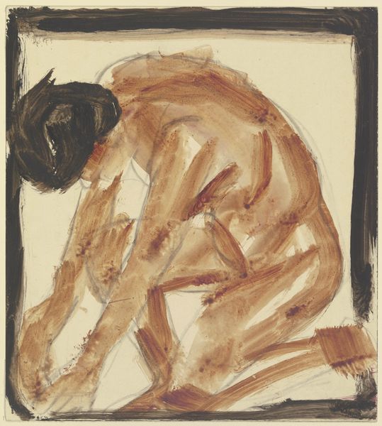 Alekos Kontopoulos created this image in 1974, and it speaks volumes with its somber palette and poignant gesture. The most striking element is the covering of the eyes. It's a universal symbol of grief, shame, or shielding oneself from a harsh reality. We see it echoed throughout art history, from ancient depictions of mourning to modern expressions of despair. Consider the blindfolded figures in Goya's war scenes, or even the veiled faces in classical tragedies. Here, it evokes a sense of profound loss or trauma. This shielding of the eyes is not merely a physical act, it's a psychological barrier. The viewer is confronted with a raw, unfiltered emotion, engaging us on a deeply subconscious level. The motif transcends time and space. It continues to resurface, evolving yet retaining its primal connection to human suffering.
