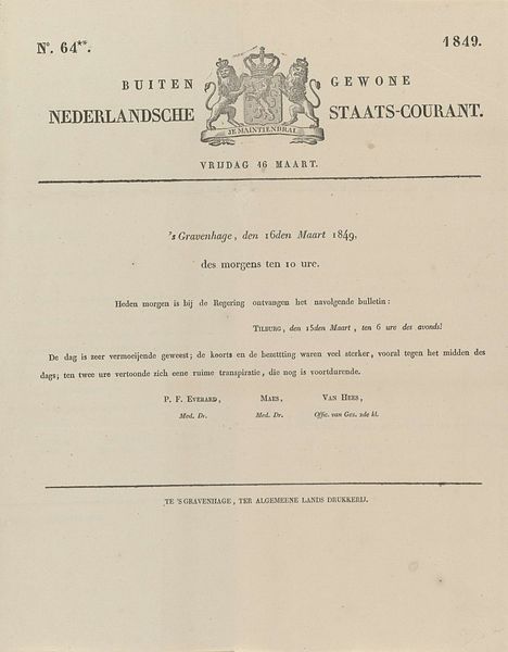 Curator: This intriguing poster, "Lijst van Inteekenaren op eene Chromolithographische Afbeelding van den Gecostumeerden Optogt te houden door de leden van het Delftsche Studenten-corps in de maand Julij 1862," was created anonymously to advertise a student event. It dates back to 1862 and is currently held at the Rijksmuseum. Editor: My first impression is of a document that aspires to something grand, yet has a certain bare-bones, official quality, almost like a proclamation. I notice the prominent typography and how the space is allocated for potential subscribers to write their names, offering a promise that there will be something spectacular, even something historical, worth putting your name behind! Curator: Precisely! It provides context. The Delftsche Studenten-corps were promoting a "gecostumeerden optogt," which translates to a costumed procession. It was in celebration of the fourth lustrum – a significant anniversary – of the Koninklijke Akademie, what later becomes the Delft University of Technology. It highlights not just the revelry but the academic and social importance of such events in the students’ lives, connecting the local to much larger conversations. Editor: I'm captivated by the reference to "Het Gezantschap van den Sultan van Achin." Achin is a region in modern day Indonesia. The poster alludes to portraying a delegation from this sultanate to Prince Maurits van Nassau dating back to 1602! It seems the procession was re-enacting significant events, casting students in various roles. This suggests an early consciousness about global politics, colonialism, trade, and even Orientalism, all through the lens of student pageantry. Curator: Right, it demonstrates an interesting dynamic. Student associations historically were incubators of cultural values. This event clearly played a part in promoting ideas of Dutch nationalism, celebrating their heritage, while reinterpreting historical narratives. How aware they were of all implications can be debated, of course, but events such as this are never only ‘fun.’ Editor: I agree. A single document can speak volumes. In a way, the image reminds me of the illuminated manuscripts from Medieval and Renaissance Europe that serve to inform and perpetuate a common ideology. A poster like this offers not just a listing of people, but a glimpse into shared values and perspectives held at a specific place and time, an era with all its particular convictions and convictions of error. Curator: This piece serves as a snapshot of Dutch academic life in the 19th century. Editor: It tells a deeper, untold narrative. It allows for examination of power dynamics within colonial historical consciousness through symbols and performative culture.