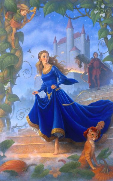 Scott Gustafson's painting of Beauty and the Beast creates an intimate scene through a masterful use of composition and color. The foreground is dominated by the soft luminescence of Belle, juxtaposed against the shadowed bulk of the Beast. Light and shadow play dramatically across the figures, highlighting the texture of their garments and features, which adds depth. Gustafson uses the symbolic language of fairy tales, reinterpreting the story through a structural lens. The harp acts as a mediator, a signifier of harmony and connection between two disparate beings. The formal arrangement suggests themes of duality and transformation that are central to the story. Beauty and Beast's positions, with her as the light and him as the dark, work to undermine conventional oppositions, suggesting that beauty and ugliness are not fixed categories but fluid states. Through formal manipulation, Gustafson invites us to reconsider our understanding of these binaries, revealing how art can challenge and redefine traditional narratives.
