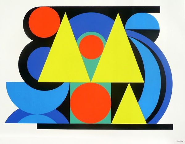 Sven Lukin created this abstract geometric painting titled ‘Diamond Head’ by applying acrylic to canvas. Born in Latvia in 1934, Lukin immigrated to the United States after World War II. The painting's title, ‘Diamond Head’, is a reference to the volcanic tuff cone on the Hawaiian island of O’ahu. The hard-edged shapes and layered composition play with dimensionality and perception. While the title gives us a clear reference point, the abstract forms allow for an open interpretation. The clean lines and smooth surfaces evoke a sense of modernity. What I find striking about Lukin's work is the way he balances a sense of flatness with an illusion of depth, inviting us to consider how we construct our understanding of space and form. The bold use of color and the precise arrangement of shapes create a dynamic visual experience. ‘Diamond Head’ embodies the spirit of geometric abstraction.