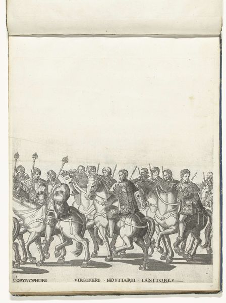 Nicolaas Hogenberg’s "Strooien van broden onder het publiek, plaat 38" is a print work whose date is unknown. The material and processes used to create the artwork—the printing press—reflect a pivotal shift in the mode of production. Engraving enables the mass production of images like this one, a process tied to broader social issues such as the dissemination of information and potentially, in this case, commentary on wealth distribution. The linear quality and intricate detail of Hogenberg's work are direct results of the engraving technique, where the artist meticulously incises lines into a metal plate, subsequently filled with ink and pressed onto paper. This act of duplication raises questions about labor, politics, and consumption. Look closely, and you'll see the physical exertion of those distributing the bread, and those scrambling to receive it. Understanding the material and the making invites us to see the artwork not just as a historical record, but as a reflection on the mechanics of its own creation and circulation.