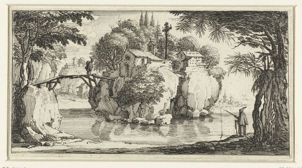 Giuliano Giampiccoli created this cityscape using etching techniques. Born in Venice, Italy, in 1703, Giampiccoli lived in an era defined by the rise of the merchant class and the expansion of European trade routes. This detailed etching presents a world where labor and leisure intersect at the water's edge. Notice the contrast between the architectural grandeur of the tower and the daily life of the common person. The labor of the man with his animals becomes foregrounded. While the tower symbolizes authority and possibly wealth, the worker represents the foundation upon which that structure is built. Consider how the water acts as a reflective space. Is it a divider or a connector? Giampiccoli captures not just a place, but a moment in time, reflecting the intricate relationship between people and place, and the silent narratives of labor and life that often go unacknowledged.