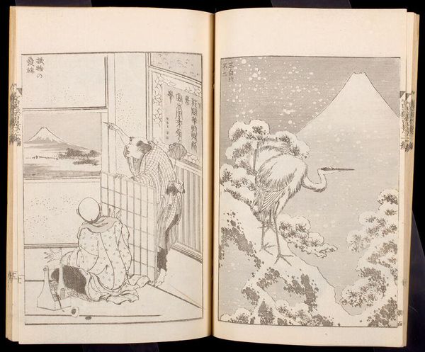 Editor: Here we have Hokusai's woodblock print, "Glorious Men of China and Japan." I’m struck by the contrast between the dynamic, swirling figure on the left and the more grounded figure on the right. What's the story behind this juxtaposition? Curator: Hokusai is playing with cultural identity here. Consider how "glory" is constructed and represented differently across cultures. The print engages with the socio-political concept of heroism. Does it celebrate or question the idea of national heroes, and for whom? Editor: So, it's about questioning the very idea of heroism? That's fascinating. I hadn't considered the political aspect so directly. Curator: Precisely. And how does the medium of print, with its capacity for wide distribution, affect the message and its audience? Editor: I see now how Hokusai uses this medium to democratize the conversation about who gets to be a hero. Thanks for illuminating that. Curator: It's a reminder that art is always in dialogue with its social context.