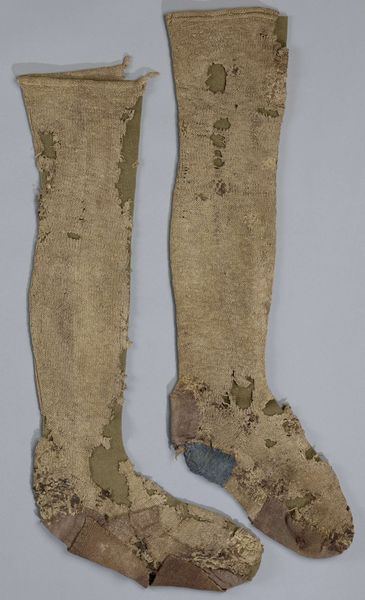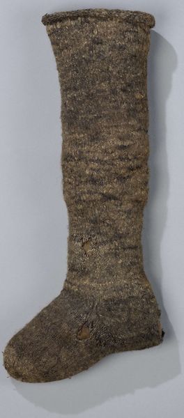 This light brown sock with a decorative seam, whose maker is anonymous, presents a compelling study in form and texture. Its very materiality, seemingly simple, invites us to consider broader structural elements. Note how the verticality of the sock is interrupted by the horizontal tie, creating a tension that destabilizes our expectations of function. The rough edges challenge the conventional idea of neatness, suggesting an openness to chance. The sock's light brown hue, far from being neutral, serves as a signifier of earthiness. Consider the sock not just as an object but as a set of codes waiting to be deciphered. What can this tell us about its cultural meaning? It challenges us to rethink the boundaries between art and everyday life.