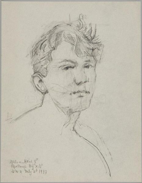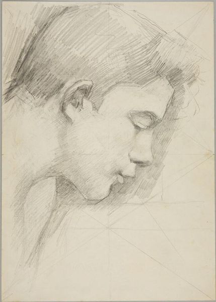 Editor: We’re looking at Giovanni Battista Piazzetta’s "Head of a Youth." It's undated and located at the Harvard Art Museums. The drawing has an unfinished, dreamlike quality. What do you see in this piece? Curator: I note the artist's strategic use of chiaroscuro. Observe how Piazzetta models the face with subtle gradations of light and shadow, focusing on formal relationships rather than emotional expression. Do you find this emphasis effective? Editor: It's interesting how the lack of color directs attention to form. I appreciate the focus on structure, but it almost feels too detached. Curator: The restraint you observe highlights Piazzetta's command of line and value. It's a study in pure form, inviting contemplation of artistic technique itself. Editor: I see it differently now. The composition highlights technique. Curator: Precisely. We both gained a new appreciation.