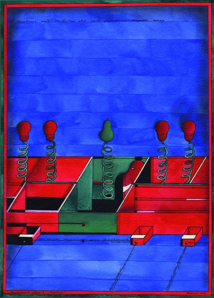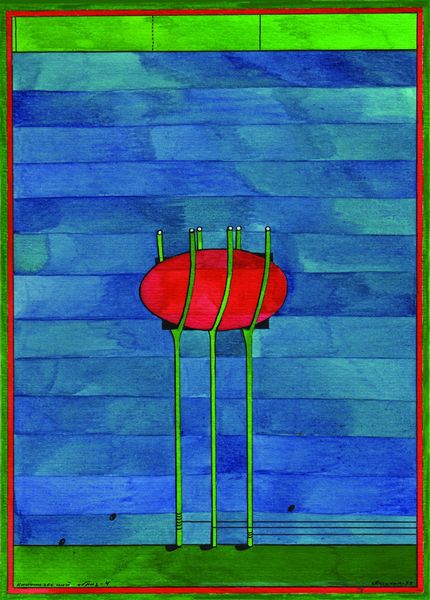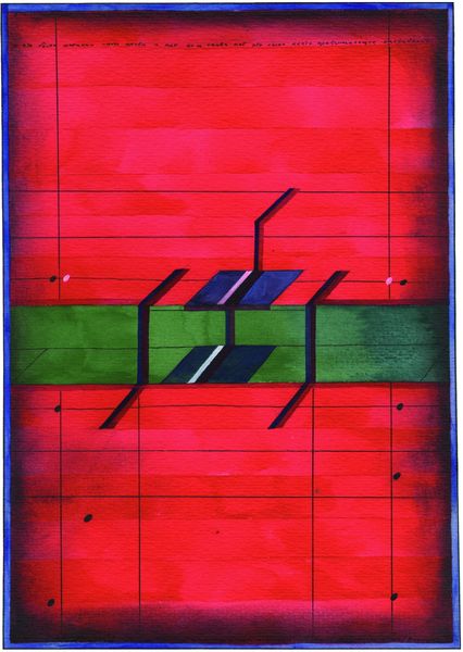 Oleksandr Aksinin made "Canonical Image" with, I guess, paint, but who knows! It's all about how the paint's put down, right? I mean, look at that big red area up top – you can see each stroke, like the making of the thing is right there on the surface. Then you've got the blue stuff, like a weird mountain range or something, and it's all these flat planes. Aksinin isn't trying to trick you with fancy perspective or anything. It's interesting to look at the way he uses line, and it's almost like he's drawing with the paint, but it's flat and graphic. I like how the bright, hot red contrasts with the cooler blues and greens. It reminds me a little of the way someone like, say, Etel Adnan stacks colors and shapes. But Aksinin has his own thing going on. It's like he's building a world from scratch, one color, one line, one shape at a time. It's so personal! It suggests a certain way of seeing, a certain way of thinking about the world that is so singular to Aksinin.