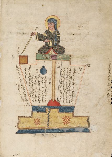 This is a page from "The Book of Knowledge of Ingenious Mechanical Devices," created by Al-Jazari, a scholar and artist from Mesopotamia, around the 12th century. This period was marked by significant intellectual exchange and innovation within the Islamic world. The design illustrates a waterwheel powered by a donkey, a marvel of engineering for its time. But let's consider the donkey itself, confined to an endless loop, a visual representation of labor and servitude. How might Al-Jazari have viewed the relationship between humans, animals, and machines? This image doesn't just show a practical device; it reflects on the relationship between labor, technology, and the natural world. Al-Jazari's detailed diagrams suggest an ambition not just to innovate, but to share knowledge, democratizing access to technology. This design invites us to consider the social implications of technology. Who benefits from such innovations, and at what cost? It reminds us that progress is always intertwined with questions of power, ethics, and our relationship to the world around us.
