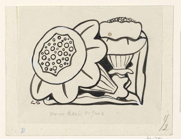 Leo Gestel made "Three Pears" on paper with pen and ink; a simple, direct, yet charming composition. The shapes of the pears are outlined with thick, bold strokes, giving them a graphic quality. It's as if the artist is thinking through the subject, trying to capture the essential form of the pears and the leaves. Look how the leaves are stylized, almost like symbols, yet they still convey the essence of a leaf. The dots and dashes on the pears give them a sense of texture, as well as volume. The stark contrast between the black ink and the white paper creates a bold visual statement. It reminds me a little of Emil Nolde’s graphic work, in the way that simple shapes are used to evoke a feeling or a mood. It’s more than just a drawing of pears; it’s an exploration of form and line, and a reminder that even the simplest of subjects can be a source of artistic inspiration.