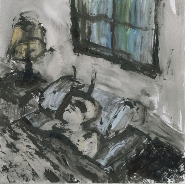 Curator: Welcome, everyone. We’re now in front of Edvard Munch’s “Man’s Body on an Autopsy Table,” created sometime between 1928 and 1932. Editor: It's unsettling. The stark blues and greens, combined with that earthy figure... there’s a visceral coldness to it. A palpable sense of death hangs in the air of this watercolor. Curator: Indeed. It’s fascinating to consider the context of its creation. During this period, Munch was deeply preoccupied with illness and mortality, fueled, in part, by his own declining health. It reflects the anxieties of modern medicine's detached view of the human body, where it is often treated as a spectacle rather than a vessel. Editor: You see that in the application, too. Look how thinly the watercolor washes are applied, almost skeletal in themselves. It speaks volumes about artistic choices reflecting a larger trend of deconstructing form and probing societal taboos of how labor shapes both life and death, physically imprinting itself. Curator: Absolutely. It challenges traditional academic approaches. Rather than glorifying the human form, Munch presents its vulnerability within the medical gaze. And we can’t ignore that it was painted during a rise of public institutions being established. How that may have impacted access to seeing medical procedures in an objective and observing manner, rather than fearful. Editor: And watercolor! Typically thought of as delicate, almost feminine. But here, it underscores a stark, masculine subject…challenging conventions and highlighting materiality that forces our view, questioning how certain mediums are associated with subjects based on their cultural use. Curator: A potent subversion. And note the composition, the subject beneath the window's cold light. There is also what looks to be structural gridlines that almost makes the painting look staged. Do you think this reinforces the voyeuristic quality you were initially talking about? Editor: Exactly! We witness the mechanics of viewing and deconstruction of self. In essence, a potent statement of society viewing us through glass and the consequences of how our laboring class is perceived under such bright spotlights. Curator: Food for thought, definitely, as we move on to our next piece... Editor: Indeed. It is always good to question our pre-conceived notions and material impacts within societies through art.