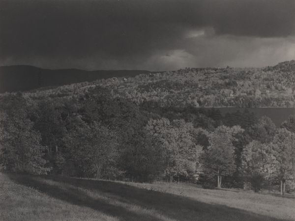 Alfred Stieglitz made this photograph titled “Lake George” at an unknown date. The image is of Lake George, New York. Stieglitz presents a serene view of the lake, surrounded by forested hills and a cloudy sky. What can we discern about the cultural and social context of this image? Stieglitz was a key figure in promoting photography as a fine art in the early 20th century. His work often challenged the established art institutions and sought to elevate photography to the same level as painting and sculpture. He was not alone, and he was part of a broader cultural movement that questioned traditional artistic hierarchies. His choice of subject matter and his artistic approach reflected a desire to capture the beauty of the American landscape. This aligned with the growing interest in environmental conservation. To fully appreciate Stieglitz's “Lake George” it is imperative that we delve deeper into the cultural and institutional context in which he worked.