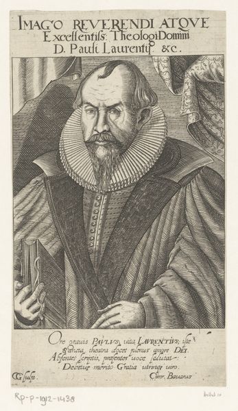 Curator: Here we have an interesting Dutch Golden Age drawing; a portrait etching thought to depict Arnoldus Geesteranus. It was produced sometime between 1650 and 1700, though the artist remains anonymous. Editor: What strikes me most is the quiet intensity in his gaze. There’s a contemplative air about him, like he’s caught between worlds, or perhaps deciding which one suits him best at this moment. Curator: Absolutely. It's fascinating to consider how the materials at hand—the paper, the pencil—shape our perception of a man like Geesteranus. Was it a commissioned portrait? Or perhaps a quick study, capturing a moment of his existence? Consider, too, that during the Dutch Golden Age, the art market and accessibility for new audiences flourished. Editor: It's interesting how the fine details of his ruffled collar almost seem to mimic clouds—there is a softening, juxtaposed against his strong, almost severe facial features. Curator: It’s a striking study in contrasts, isn't it? Consider the material circumstances in which such finery could even exist! The Dutch Republic at the time was deeply embedded within international trade. Such fine textiles are indicators of robust systems of manufacturing, market, and consumer power. The paper, the pencils used - these are commodities. Editor: And, as always, it becomes almost impossible not to impose contemporary anxieties onto an image like this. Are we capturing him or imprisoning him? Is it homage or commerce? I guess the magic lies in never quite knowing. Curator: Perhaps so. But certainly, to consider this work materially is to reveal much more than first meets the eye. It allows us to investigate labour practices, supply chains, all enmeshed in the subject staring back at us! Editor: For me, though, it circles back to the initial impression. Beyond all the history and context, he remains...intriguing. Almost beckoning. Curator: Yes, indeed, a man—and an artwork—that draws us in despite the years that lie between us.
