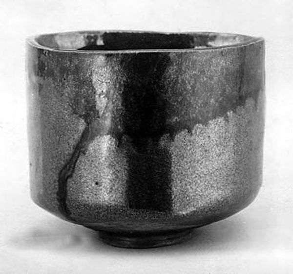 Editor: So, this is the Teabowl by Ichinyu, likely made between 1665 and 1685. It’s a ceramic piece, currently housed at the Met. It has a solemn and rustic quality. What catches your eye when you look at it? Curator: The sheer physicality of this object is striking. I see not just a bowl, but a record of labor, of someone’s interaction with clay, with fire. This wasn't effortlessly conjured. The rough texture tells a story about the making. How was this ceramic object fired and under what conditions, what kind of glazes were used, who mixed these? And what does the act of repeated tea consumption communicate in Japanese culture at this moment in time? Editor: That’s fascinating. I was focused on its shape, but you're leading me to think about its creation, and even the social context in which something like this becomes useful. The labor and the purpose. Curator: Exactly. Consider how different the status of ceramics might be across various cultures. Here, what appear to be irregularities are celebrated rather than hidden, in line with wabi-sabi aesthetics that find beauty in imperfection and transience, particularly visible in functional objects consumed in daily life. How does its function elevate or devalue it? How are notions of “fine art” challenged through elevating utilitarian pottery? Editor: It’s interesting how the use of something elevates it from just a thing to something culturally important, something beyond its raw materials. Curator: Precisely. The teabowl becomes more than just clay, and by understanding its materiality we are better positioned to understand its value in social and historical contexts. Editor: I never thought about a bowl holding so much meaning. Curator: Materiality is everything. I'm happy to learn alongside you and share this moment.