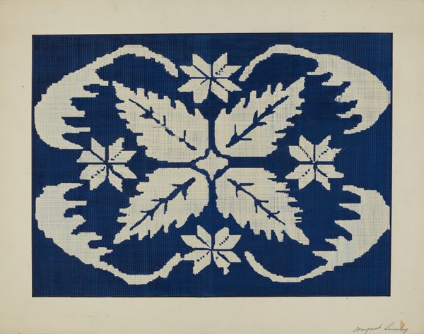 Theodore Pfitzer created this woven coverlet, a watercolor and graphite on paper, sometime in the first half of the 20th century. It presents a fascinating intersection of art, craft, and cultural identity. The imagery combines a formal, almost geometric arrangement of stylized floral motifs, stars, and other designs within a grid-like structure. We can imagine it being made in the United States. The coverlet draws from German folk art traditions brought over by immigrants, particularly from the Pennsylvania Dutch community, which saw a flourishing of such crafts. This style offered a creative outlet for women, a way to express their heritage, and even supplement household income. The artwork evokes questions about the role of folk art within a rapidly industrializing society and the preservation of cultural traditions. To fully understand its significance, one could research textile production in the US at the time, or delve into the archives of local historical societies in Pennsylvania. It helps us consider the power of art to negotiate the tensions between tradition, modernity, and cultural identity.