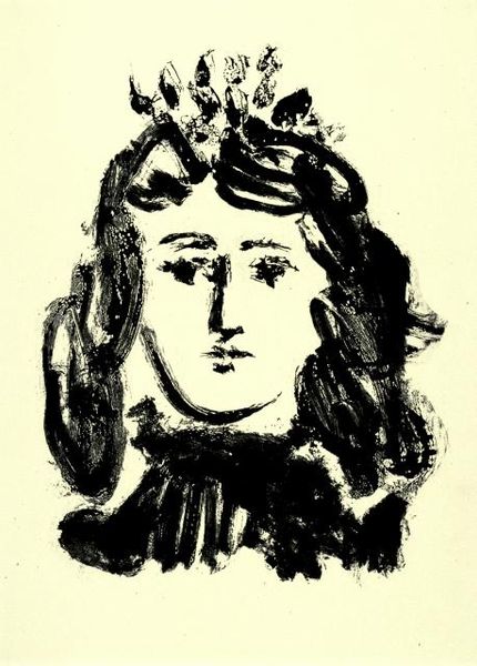 Editor: Here we have Anatoli Kaplan's "Portrait of Godl," a lithograph created between 1957 and 1961. The texture is what immediately strikes me. The granular surface and stark contrast give it an almost ghostly presence. What do you see in this piece from a formalist perspective? Curator: Indeed. Observe how the artist uses dense, vertical hatching to define the background, a field of visual energy that both surrounds and seemingly penetrates the figure. The lithographic technique lends itself well to this, creating a palpable tension between figure and ground. Editor: So it’s the technique itself that is creating this specific affect? Curator: Precisely. Note the figure's flattened, almost mask-like quality. The heavy outlining and stark value contrasts—areas of dense black juxtaposed with unmodulated white—serve to emphasize the two-dimensional surface of the print. The strategic use of chiaroscuro directs the eye to the face, the locus of the portrait. Consider also the collar, how its textural detail contrasts with the relative flatness of the face and the boldness of the dark shoulder line, dividing the space. Does it remind you of other works of the time? Editor: It reminds me of other expressionist prints, in the way the artist prioritizes communicating an emotional or psychological state rather than a strictly mimetic likeness. I’ve never noticed that this can also come through such deliberate surface contrast and line quality, as you point out! Curator: Formal analysis reveals how Kaplan constructs meaning through purely visual means: the tension between depth and flatness, light and shadow, texture and line. The effect is unsettling. I would add that while the work can appear realistic, it takes on symbolic significance when viewing it in light of Russian non-conformist art. Editor: Thank you, that has significantly sharpened my perception of this piece.