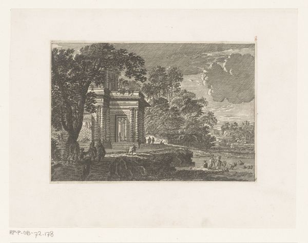 Jean Laurent Legeay created this etching around the 18th century, a landscape populated with tombs and antique ruins. Dominating the scene, monumental vases and architectural fragments speak to a fascination with the grandeur of the past, yet these symbols carry a deeper resonance. Notice how these funerary vases evoke a sense of mourning, a theme echoed through history, from ancient Greek burials to Renaissance vanitas paintings, where skulls and decaying fruit remind us of mortality. These emblems aren't just about death; they’re about memory, about the enduring human need to confront and commemorate our fleeting existence. Consider the subconscious power of ruins: they represent not just decay but also the cyclical nature of civilizations, rising and falling like tides. In each ruin, in each vase, we see echoes of human aspiration, loss, and the relentless passage of time, engaging our emotions and drawing us into a timeless dialogue with the past.
