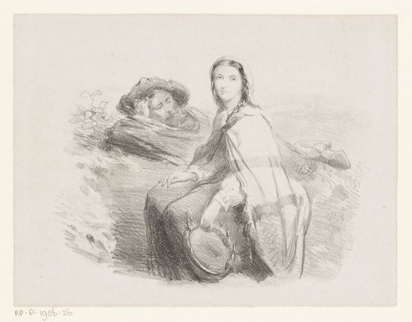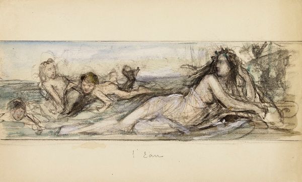 Curator: This delicate etching by H.P. Hansen, circa 1870-1873, is an illustration for Hans Christian Andersen’s “The Little Mermaid." Editor: It strikes me immediately as having a somber mood, almost melancholic. The stark lines, the limited tonal range... it creates a sense of quiet desperation. Curator: Indeed. Notice how the etching technique allows for a remarkable level of detail. The meticulous cross-hatching builds up the tonal variations to describe the mermaid's form as she emerges from the water, her wistful gaze fixed on a butterfly. Editor: But look closely at those reeds! They're aggressively vertical, like bars—meticulously rendered, but also imposing. How the physical act of repeatedly scoring the plate would emphasize that division between her world and the air. Curator: The composition certainly contributes to that reading. There is a clear juxtaposition between the flowing lines of the mermaid’s hair and the sharp, angular reeds, furthering that visual tension. We also cannot neglect the butterfly, a classical symbol for transformation, adding another layer of signification. Editor: And speaking of labor, think of the printmaking process: the acid etching biting into the metal plate, the repetitive printing for mass consumption alongside Andersen's text... it emphasizes this commodification of both folklore and the female figure. That's labor intensive and not readily repeatable in, say, oil painting. Curator: Very true. The scale is also quite intimate, which intensifies the viewer’s connection to the solitary figure. The economy of line contributes to its emotional power, rendering visible what remains unspoken. Editor: For me, focusing on the materials of Hansen’s labor provides a richer, embodied encounter than simply labeling it "Romantic." I am thinking through his actions. Curator: I appreciate your contextual perspective, especially when considered alongside the intrinsic pictorial strategies. Editor: Thank you; your insightful analyses focusing on Hansen’s careful composition deepens my appreciation, too. I leave here thinking that an encounter with "fine" art should involve its materiality, its messy processes of creation, not some idealized aesthetic object.