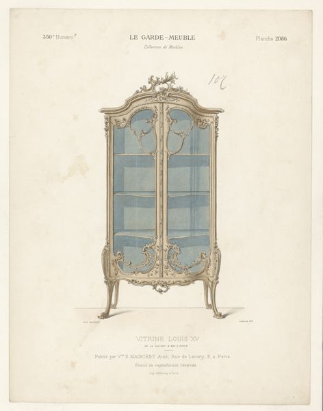 This lithograph by Léon Laroche, called Buffetkast, really does a lovely job of suggesting depth and texture through line and color alone. You can almost feel the smooth, cool surfaces of the wood and glass. What strikes me most is the balance between the architectural rigidity of the cabinet's structure and the organic, flowing lines of the floral motifs. See how the sharp corners and straight edges are softened by the delicate, vine-like patterns? It’s like nature is trying to reclaim this man-made object, softening its edges. Look closely at the way Laroche uses color, too. The muted earth tones create a sense of warmth and antiquity, while the touches of gold add a touch of luxury and elegance. It reminds me a little of Gustav Klimt, who was working around the same time, using ornamentation to question the boundary between surface and depth. Ultimately, this image isn't just about a cabinet, it's a reflection on the relationship between art, nature, and everyday life.
