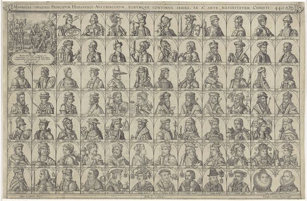 This is a hand-colored print titled "The Reasoned Moral Chart of Symbols of the Republic, Founders of Liberty, and Martyrs of Liberty," made by Johann Andreas Endterische Handlung. The print arranges a series of circular portraits and allegorical figures into a grid-like structure, immediately evoking the Enlightenment's emphasis on order and categorization. The composition is divided into three distinct zones, each dedicated to different aspects of liberty. At the top, allegorical symbols represent virtues; below, we find portraits of the "Founders of Liberty," and lastly, the "Martyrs of Liberty." Note how each figure is neatly contained within its circular frame, creating a sense of containment and control. The limited color palette, primarily blues, reds, and browns, adds to the print's systematized feel, and the use of similar colors across the categories suggests an underlying unity of purpose. Endterische Handlung’s print is more than just a collection of images. The artist aimed to create a visual system that reflected the Enlightenment’s aspirations for a rational and morally ordered society.