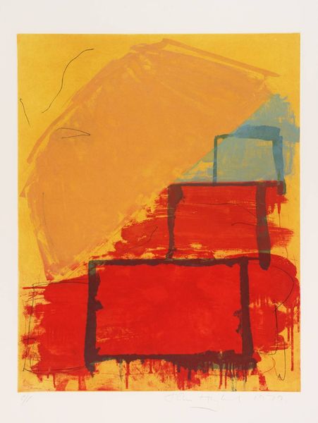 Here we have an untitled piece by Mark Rothko, known for his abstract expressionist paintings. This work strikes us with its bold, horizontal composition, dominated by fields of ochre brown bisected by a vibrant yellow band. The texture is visibly layered, with brushstrokes that create a sense of depth and movement within the flat planes of colour. Rothko's approach reduces painting to its most essential elements: colour and form. The canvas is divided into large, simple shapes, inviting the viewer to contemplate the relationship between them. This simplicity belies a complex interplay of visual forces. The rough application of paint and blurred edges challenges the eye, disrupting any clear distinction between figure and ground, and refusing a singular interpretation. The formal elements of the piece – its colour, composition, and scale – work together to create an immersive experience, inviting contemplation on how art can engage with the viewer on a deeply emotional level.