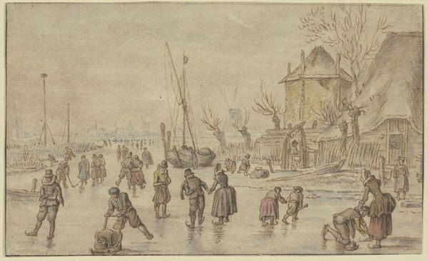 Hendrick Avercamp captured this lively "Scene on the Ice" on panel in the Dutch Golden Age, around the early 17th century. The frozen landscape teems with figures, each engaged in winter activities that reflect both leisure and labor. The ice itself, a recurring motif in Northern European art, symbolizes the ephemeral nature of life. Yet, Avercamp fills this transient scene with details of human activity: figures skating, chatting, and even falling. This reflects a Bruegel-like fascination with everyday life. Observe the bridge, a structure connecting two banks, a symbol of transition and the journey of life. This motif can be traced back to ancient Roman art, where bridges signified imperial power and connectivity. Here, the bridge suggests a link between different aspects of human experience. Such scenes evoke a deep sense of collective memory, reminding us of our shared human experiences across time. The wintery landscape, with its stark beauty and inherent dangers, speaks to the complex relationship between humanity and nature, inviting a reflection on our own place within the cyclical rhythms of life.