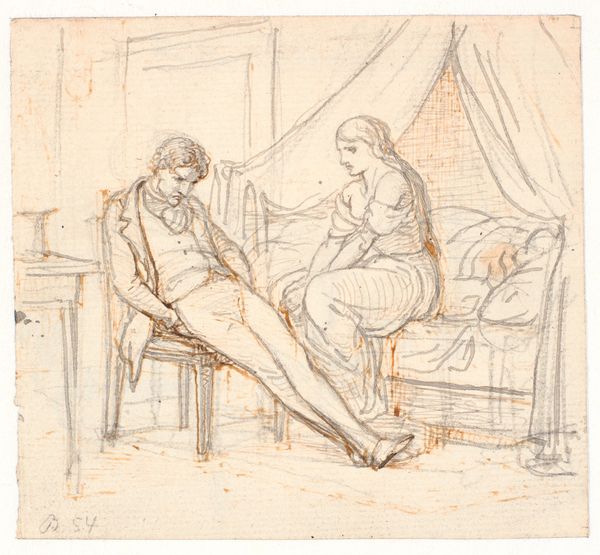 Curator: Immediately I’m struck by the tenderness of this scene, a quiet domestic moment. Editor: Indeed. What we have here is "A Mother Playing with Her Child Who is Grabbing for an Apple," a pen and ink drawing by Nicolai Abildgaard, dating roughly between 1743 and 1809. It currently resides in the collection of the SMK, the National Gallery of Denmark. Curator: It’s interesting to consider the production of this work. The intimacy suggests this wasn't necessarily commissioned. Was this perhaps more of a personal study? Look at the way Abildgaard used ink wash to model form and suggest drapery; it feels both deliberate and spontaneous. Editor: It reflects a broader interest in genre scenes that emerged in this period. We often view Abildgaard through the lens of neoclassicism, considering his significant impact on Danish painting, but drawings like this remind us of the emerging romantic sensibilities, focusing on emotion and the everyday experiences. Museums, during Abildgaard’s lifetime, were really starting to champion history paintings of virtue. So a mother and child image departs from his epic artworks. Curator: Yes, you can see a softer style here, focusing on line work and tonal variations, it is interesting that Abildgaard is more celebrated for oil paintings but that he was a Master Draughtsman as this work here proofs. Thinking about his materials: paper, pen, ink – simple, accessible tools – emphasizing a hands-on approach to creation and moving away from a glorification of just painting, an aesthetic hierarchy. Editor: The ambiguity in the unfinished sketch on the right gives pause to the question of intention. It seems Abildgaard was reflecting on classic portraiture conventions—the partially completed head resembles Greek sculpture busts, a staple for artists and connoisseurs in the late 18th Century. It may underscore the elevated status that mothers in society during his lifetime enjoyed and also questions it. Curator: I appreciate seeing a master artist exploring such universal themes of motherhood and childhood. It brings a relatable human touch to his oeuvre. Editor: It's fascinating how an image focusing on materials and process and another focusing on a socio-historical perspective reveal layers of insight into this deceptively simple drawing.