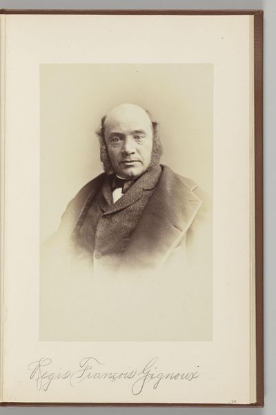 Curator: This is Nadar's portrait of Edmond-René Laboulaye, created sometime between 1853 and 1879. The artwork, now held at the Art Institute of Chicago, employs the daguerreotype technique on paper. Editor: My first impression is "serious." The sitter seems a bit weary, but resolute. I suppose that's nineteenth-century portraiture in a nutshell, isn't it? Curator: Indeed. The composition follows a predictable structure, focusing attention squarely on Laboulaye's face. Notice how Nadar employs a limited tonal range to subtly model form. The depth of field is shallow, rendering the background indistinct, which paradoxically throws his hands and lap into sharp detail, anchoring him within the pictorial space. Editor: The way the light catches the folds in his jacket is pretty spectacular for such an old process. I imagine sitting still long enough to make a daguerreotype in those days wasn't exactly a picnic, so this must've been an important occasion for him to endure the process! It really conveys the gravitas that must have come along with being photographed back then. Curator: Precisely. Daguerreotypes, given their unique materiality and inherent indexicality, offer an unmediated trace of reality, which no doubt lent an air of solemnity to the undertaking. There's also the issue of the image being a mirror-image, and how that complicates notions of portraiture. Editor: A mirror image! So that's not really how Laboulaye looked day-to-day. It makes me wonder how perceptions and memories shifted during the rise of photography as reality became something you could hold in your hands, but at least the truth would be reversed! That opens a delightful Pandora's box of philosophy... Curator: An accurate point about its implications on societal awareness. Nadar, a master of capturing character, transcends mere representation. He invites us to consider not just *what* we see, but *how* we see and what the photographic process itself does to the portrayal. Editor: It's strange, isn’t it, to think that this single sheet of paper lets us commune with someone across a century, like shouting across time! This object, so firmly in its time, lets us stretch out across the divide, no passport needed. Curator: Agreed. And hopefully, with new perspectives.