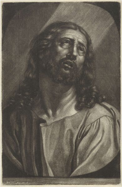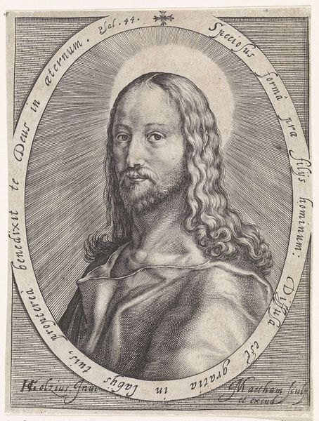 Editor: This is “Portrait of Christ,” an engraving by Paulus Pontius from 1633, currently held at the Rijksmuseum. What strikes me most is its incredibly detailed linework; it almost feels photographic in its precision. What do you see in this piece, beyond the surface level? Curator: I see more than just religious iconography, I see a product of its time, enmeshed in complex social and political currents. This image of Christ, reproduced through engraving, would have circulated widely, shaping perceptions. What kind of power dynamics were at play here, influencing who could access and interpret this image? Editor: You’re right, the accessibility of engravings makes a huge difference. How does that relate to the Counter-Reformation’s use of imagery? Curator: Exactly! Think about the context: The Counter-Reformation used images to reassert the Church’s authority and appeal to emotions. How does this portrait align with, or perhaps subvert, those intentions? Is it a straightforward piece of religious propaganda, or does it hint at something more personal, more human? What's your read on his gaze, his expression? Editor: He looks contemplative, maybe even a little melancholic, which is different from a lot of triumphant depictions of Christ I've seen. Curator: Precisely! That melancholic tone might resonate with different viewers across diverse social strata, perhaps offering solace or sparking critical thought. Editor: This makes me realize how important it is to analyze even seemingly straightforward religious art through the lens of social context. Thank you. Curator: Absolutely! And by considering who created, commissioned, and consumed such images, we can gain deeper insight into the power structures of the era and the complexities of faith and identity.