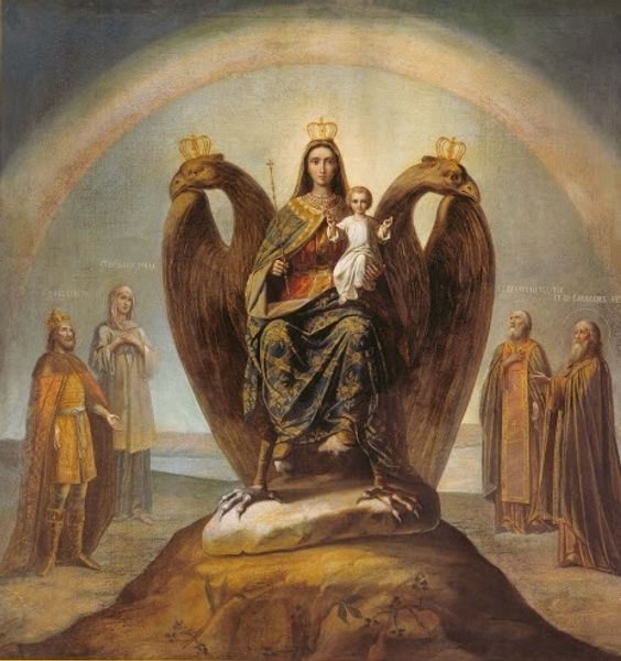 Curator: Oh, my goodness, what a whirlwind! I feel like I've just stepped into a baroque opera. Editor: Indeed! Before us, we have Benjamin West's "The Woman Clothed with the Sun Fleeth from the Persecution of the Dragon," circa 1797, rendered in oil paint. It's quite a monumental piece, capturing a scene right out of the Book of Revelation. Curator: The drama! The theatrical lighting! The colors practically vibrate. It's almost… apocalyptic disco. You can just feel the divine energy crackling off the canvas. Editor: The painting encapsulates the allegorical struggles within the Christian narrative, steeped in the politics of the era. The "woman" represents, allegorically, the Church—or perhaps more broadly, any persecuted people, fleeing from tyranny embodied by the dragon. The Romanticists were quite keen to take a symbolic theme or two from scripture. Curator: Absolutely! And those colors, that glorious, billowing fabric. It feels so human, so vulnerable even amid the grand celestial battle. You almost want to reach out and protect her. She looks positively overwhelmed. And there's a rather psychedelic dragon, is it not? Editor: One certainly could consider the visual drama. West situates the piece amidst significant social upheaval, where traditional power structures were being questioned. He channels the narrative to perhaps underscore themes of resilience and resistance, in the face of adversity, drawing on interpretations rooted in feminist and liberation theology. The woman's flight could then reflect various groups facing systemic oppression. Curator: Yes, but look at that almost defiant reach of her arms, her crown of stars a statement. It feels like even while in flight, she's still grasping for hope, for the possibility of… glitter amidst the chaos. Do you see that weird red lobster dragon thing? So camp! Editor: Its function transcends simple camp. The monstrous figures draw on very real societal anxieties, speaking to a profound tension between stability and change, authority and autonomy, in late eighteenth-century European political philosophy. I would further submit the figures in clouds are also very representational of philosophical perspectives of the time... but, again, more material. Curator: Perhaps. But as I look closer, the colors start to whisper their secrets. A dance of shadow and light, like a spotlight illuminating the stage for our brave heroine. This canvas vibrates with potential. What I perceive as gaudy others might see as optimistic. Editor: And what strikes me is the endurance of these stories, how they morph to speak to various eras of turmoil, reminding us that resilience often sparks creative acts of rebellion and imaginative narratives of hope. Curator: It seems that even centuries later, we can still hear the echoes of that opera, can't we?