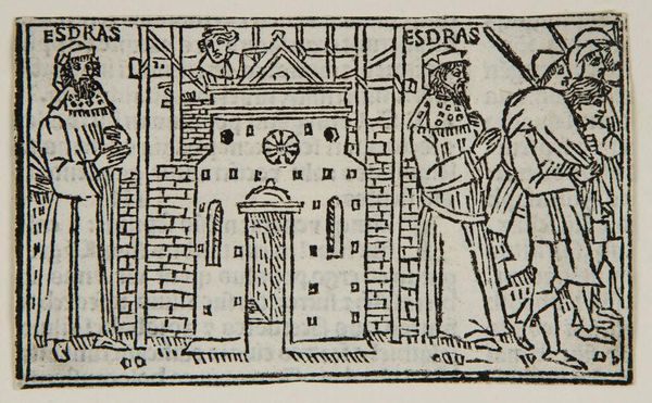 Curator: The stark contrast of this woodcut immediately grabs your attention, doesn't it? Editor: Yes, the raw emotion is palpable. What exactly are we looking at? Curator: This is "Book XXVII.37. Prodigy: At Capua a wolf entered the gate and tore the centinel," an anonymous work now held at the Harvard Art Museums. It depicts an event described by Livy. Editor: The wolf, a symbol of primal chaos, breaches the ordered space of the city—a clear violation. It really speaks to the anxieties surrounding the boundaries between civilization and the wild. Curator: Precisely! This artwork highlights the fragility of social order and the ever-present threat of the "outsider," especially in times of political and social upheaval. Editor: It's a chilling reminder that even the most fortified structures can be breached, both physically and metaphorically. Curator: It really makes you think about who gets to define the boundaries of belonging and who is deemed "outsider." Editor: And the wolf’s continued presence in art speaks to enduring human fears.