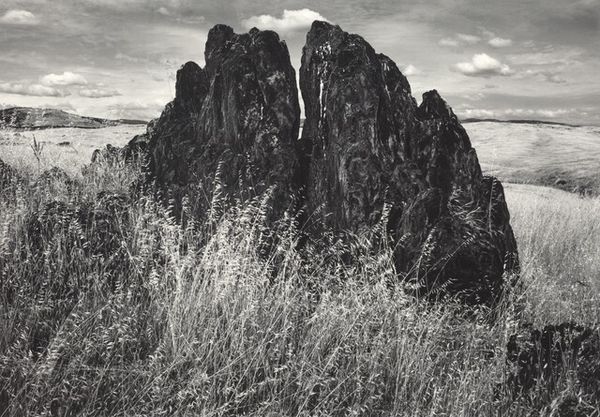 Robert Adams made this gelatin silver print of Larimer County, Colorado, and the grayscale is so sensitive to the light, it makes the rock feel like it's breathing. It’s not just a static object; it's alive with textures and geological time. Look at the way Adams captures the rough, almost crumbly texture of the rock, and then notice the tiny, almost imperceptible, bottle at the base. This mundane detail is a reminder of human impact, and it’s like a little joke, disrupting the romantic idea of untouched nature. The surface is far from perfect, with its cracks and irregular patterns—it’s about process and change, not just the final image. Adams reminds me of the Bechers, but with more pathos. His work, like theirs, invites us to see the world as a series of ongoing, open-ended questions rather than closed statements.