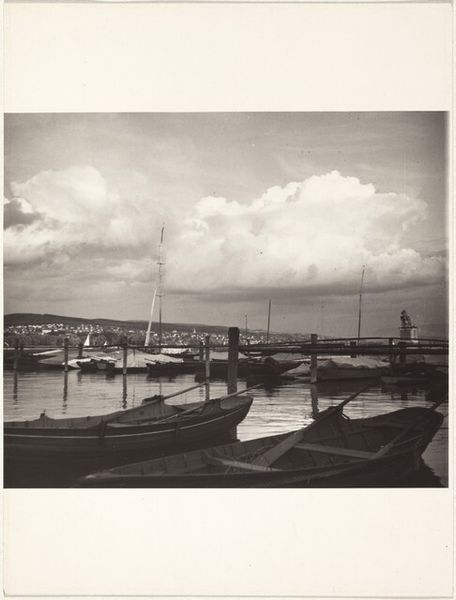 Robert Frank's 'Dock' is a photograph that feels like a memory, captured in shades of grey. It’s all about layering; the dock leading our eye into the misty water, the boats huddled together, and then that distant monument, barely visible. The texture is key here. Look at the graininess of the image, it’s not crisp or sharp, but soft and dreamy. It's like he’s painting with light, blurring the edges of things. The way the light hits the surface of the water, creating a shimmering effect, is particularly beautiful. It makes me think about how light can transform the ordinary into something magical. Frank’s work often has a melancholic feel, and this piece is no exception. The stillness of the boats, the quiet of the scene, it all adds up to a feeling of solitude. It reminds me a bit of Eugène Atget’s photographs of Paris – capturing a sense of place, but also a sense of time passing, of things changing. There’s no right or wrong way to see it, just different ways of feeling it.