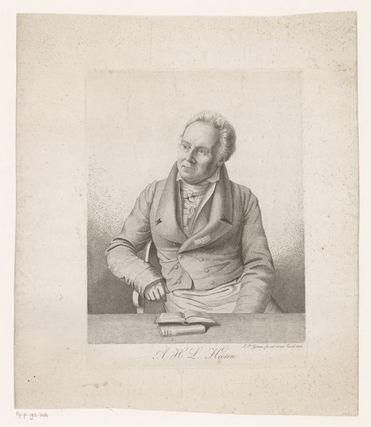 Curator: Here we have an intriguing portrait from between 1839 and 1850 by Franz Chevalier, titled "Portret van Christian Friedrich Segelbach." The work is graphite, a pencil drawing rendered as a print. Editor: The gaze really strikes you first, doesn't it? It's the kind of portrait that seems to capture a certain… resignation, perhaps. There's a somber quality in the eyes and the tight set of the mouth. I notice the precision of line, but overall I find its feeling austere, removed. Curator: Indeed. This print very much reflects the ideals of Neoclassicism as well as aspects of realism. Segelbach’s features, while idealized to a degree, have a clarity that suggests careful observation, and this aligns with academic art’s emphasis on formal correctness. The somber quality is typical, a symbolic reminder of serious-minded civic duty. Editor: Civic duty often being a tool for social control. I am thinking about who could have had access to this work. Segelbach appears to have been someone of stature. The work serves as a declaration of status in a period rife with political upheaval and class struggle, where the rising bourgeoisie increasingly commissioned portraits as signs of their own ascendance. Is he aware that his portrait in this style could symbolize an assertion of the ruling class? Curator: It is plausible. However, portraiture had very set symbolic languages tied to cultural norms. Beyond simply documenting appearance, portraiture serves to perpetuate ideas and convey messages. Segelbach's face seems not to follow any conventional formula; yet we may examine the sternness and formality of the period itself, with an understanding of the role such portrayals played within 19th-century European social dynamics. Editor: But aren't portraits also often a dance of self-presentation, revealing less about the subject than about how they wanted to be seen? Here the use of grayscale helps achieve a kind of detached, ideal portrait. Curator: Perhaps. Symbols speak in layers. This piece allows us to meditate on how we encode identity through representation. Editor: It's true, these images are really cultural echoes, prompting conversations about their origins as well as our perceptions today. Thank you!