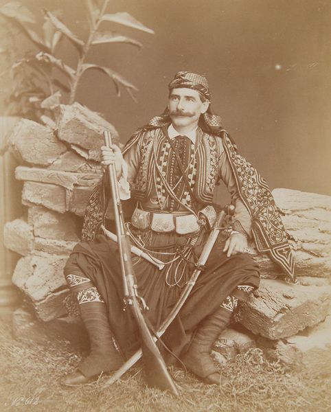 Curator: This photograph, titled "Syrian resistant. Studio Shehrazade, Saida, Lebanon, early 1970s," comes from Akram Zaatari's exploration of Hashem el Madani's studio practice. Editor: It's strikingly direct. The man's gaze, the keffiyeh, even the patterned shirt—they all feel so carefully chosen. I wonder about the fabric used for that shirt and the labor involved. Curator: The studio portrait becomes a site of political performance. These images circulated within specific social networks, solidifying identities and allegiances amidst regional conflict. Editor: Exactly. The very act of commissioning this portrait in a particular studio signals an alignment. We see the intersection of individual identity and broader political movements through the material culture on display. Curator: The image itself becomes a kind of artifact, a document of resistance within a specific historical context. Editor: It makes you think about the choices, conscious or not, behind what we choose to present to the world. Curator: Indeed, a powerful reminder of the intersection of the personal and the political.