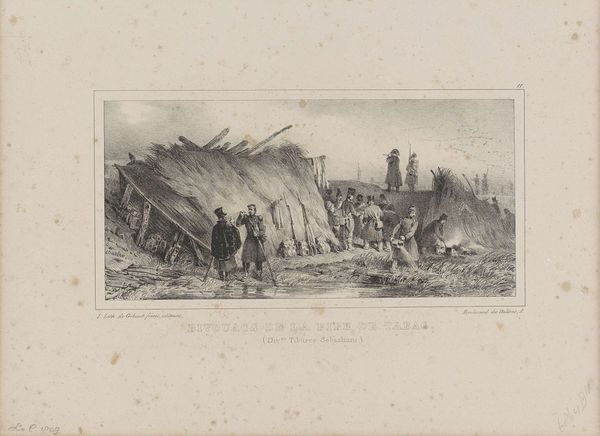 Editor: Here we have "Bivouacs of the Tobacco Pipe" by Nicolas Toussaint Charlet. It kind of evokes a sense of camaraderie, yet also isolation. What do you see in this piece? Curator: It’s like a snapshot of a story, isn't it? I feel the warmth of a shared fire in stark contrast to the vast, cold unknown beyond the bivouac. What does "tobacco pipe" conjure for you? Editor: I guess it represents a moment of peace in a chaotic time. Curator: Exactly! Charlet captures that fragile human connection, a little bubble of warmth and shared experience against the backdrop of… well, whatever campaign they're on. It makes you wonder about their stories, doesn’t it? Editor: Absolutely! It's like a little window into a forgotten moment. Curator: Precisely. Art often whispers secrets of humanity if you listen closely.