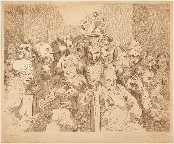 Lorenzo Baldiserra Tiepolo rendered this drawing with pen and brown wash, depicting philosophers and pupils beside an antique sarcophagus. The sarcophagus, a potent symbol of mortality, anchors the scene. These stone coffins, adorned with reliefs, transcend mere burial, functioning as a stage for eternal narratives. Note the recurring motif of the open book, symbolising knowledge, seen scattered around the base of the sarcophagus. The unrolled scroll and open book—echoes of wisdom from antiquity—reappear across centuries, from the classical world to medieval illuminated manuscripts, each time signifying the quest for understanding. Consider the emotional weight carried by these objects. The melancholic reflection on mortality, paired with the lively pursuit of knowledge, represents the human condition. These symbols—the sarcophagus, the scroll—transcend time, reflecting our continuous dialogue with the past.