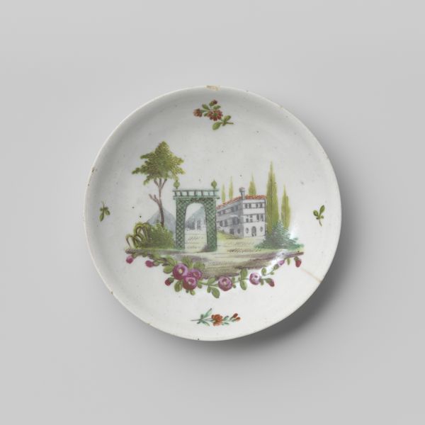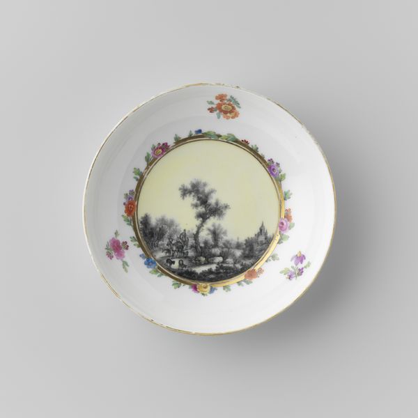 This shallow porcelain dish was painted by the Koninklijke Porseleinfabriek Dommer & Co. in the Netherlands. With its picturesque river landscape, it embodies the cultural values of its time. The image creates meaning through its visual codes, reflecting Dutch society and its relationship with the landscape. The scene evokes a sense of pastoral harmony, with idealized figures in a rural setting. In this period the Netherlands was a major economic power, and its art often reflected the values and aspirations of its merchant class, emphasizing themes of order, prosperity, and domesticity. Dutch art institutions played a role in shaping artistic production, supporting artists who catered to the tastes of their patrons. By examining archival records, historical documents, and period literature, we can uncover the social, economic, and cultural forces that shaped the creation and reception of this work. Ultimately, the meaning of this artwork is contingent on its social and institutional context.