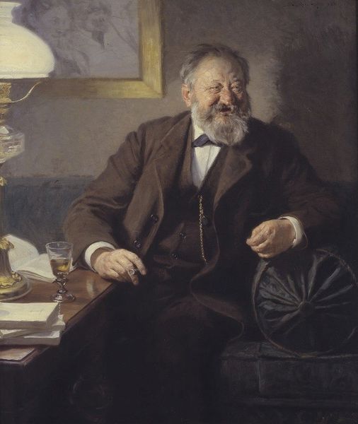 Editor: This is Nikolai Ge’s “Portrait of Leo Tolstoy,” painted in 1884. There's a real intensity to this image; it’s intimate, like we're catching Tolstoy in a private moment of deep concentration. How would you interpret this work? Curator: Well, Tolstoy was a figure who challenged the very foundations of Russian society. Ge, similarly, questioned artistic conventions. In this light, the portrait becomes less about simple representation and more about portraying a kindred spirit engaged in revolutionary thought. Editor: Revolutionary how? Curator: Look at Tolstoy's downward gaze, the weight of his ideas pressing down on him as he writes. Ge paints him not as a celebrated author, but as a man wrestling with complex moral and spiritual issues. It’s critical of the structures of power that demand conformity. How does the somber color palette add to this reading, do you think? Editor: It definitely adds to the feeling of gravity. Everything's muted; there are no distractions, it's just him and his work, locked in a struggle of thought. Were Ge and Tolstoy close? Curator: Absolutely. Ge admired Tolstoy's philosophy and his critiques of social injustice. Think about the role of art in reflecting and challenging social norms, and the responsibility of the artist in bearing witness to these struggles. Considering this, does this painting offer a form of solidarity? Editor: It does. It reframes Tolstoy from a literary icon to a man actively fighting for what he believes in, making it an artwork with social significance. Thank you. Curator: It's about situating these artistic moments within the churning socio-political landscapes from which they emerged, and understanding them as cultural commentaries. It’s been enlightening!