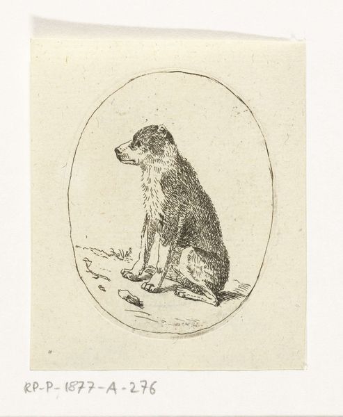 This is Agostino Carracci's "Standing Dog", an engraving made in the late 16th century. The image captivates with its stark contrast and meticulously rendered textures. Observe how Carracci uses a network of fine, deliberate lines to construct the dog's form. These lines coalesce to define the animal's musculature, its fur, and even the subtle gradations of light and shadow. Notice how the compactness of the dog's body is juxtaposed with the detail in its head, especially in the eyes which brings a sense of focused attention. Carracci's technique creates a palpable sense of volume and presence. The cross-hatching is not merely descriptive; it actively models the form, giving it a three-dimensionality that belies the flatness of the print. The image operates almost as a study in contrasts between the smoothness of the head and the rough texture of the body. The underlying philosophical premise of the artwork is perhaps best understood through semiotics - each line, shadow, and contour functions as a sign, contributing to a comprehensive portrait. This artwork challenges fixed meanings, prompting viewers to continually reinterpret the relationship between representation and reality.