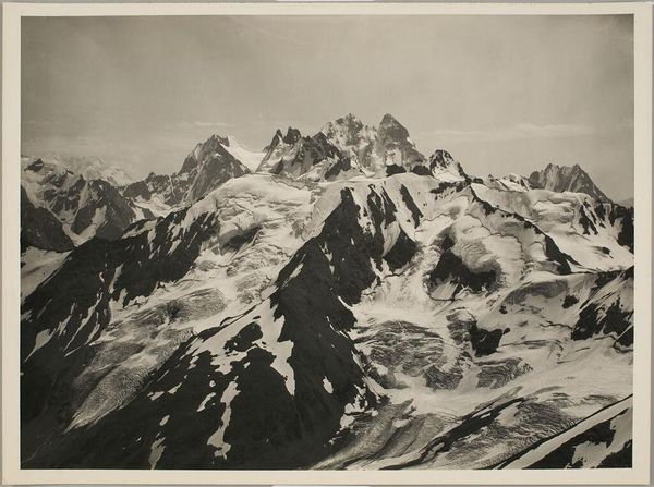 Curator: I'm immediately struck by the bleakness of this mountainscape—the monochrome palette, the sheer, jagged rock faces. It feels quite imposing, a little scary even. Editor: We’re looking at "The Aiguille Blaitiere," a drawing completed in 1856 by John Ruskin. Executed in charcoal and graphite, it exemplifies his keen observational skills and romantic sensibilities applied to the natural world. Curator: Romantic sensibilities? It’s more gothic horror to me! That stark contrast between light and shadow feels… almost oppressive. I keep thinking about class conflict during the time. Do you think industrialization and class struggles influenced the work? Editor: It's impossible to ignore those forces when considering the context. Ruskin was deeply concerned with social reform and the destructive aspects of industrialization. Mountains represented untamed nature, something pure and eternal against the backdrop of societal changes. His art becomes intertwined with that cultural context, reflecting his concerns for social justice and the environment. Curator: It definitely highlights a tension, then—between human ambition and the indifference of nature. Are we dominating the landscape, or are we utterly insignificant in its face? I think, in this particular drawing, he suggests the latter. And, I can definitely feel that pull between detail and atmosphere. Like the artist is losing himself within these mountains, yet wanting to express their sublime terror. What are your thoughts? Editor: Precisely! And that feeling is a thread we see repeatedly through Romantic art in Europe. Ruskin’s rendering is exceptionally meticulous, even scientific, in its detail, from the rock formations to the glacial striations. But it's also a grand, awe-inspiring vista, encapsulating that Romantic concept of the sublime, you’re so spot-on! That overwhelming power of nature contrasted with human frailty is hard to avoid with this drawing. Curator: I also detect this quiet undercurrent about the power of the earth's resources in both an artistic sense as well as a commodity during the Industrial Revolution. What sort of a message do you think Ruskin might have wanted to transmit with it? Editor: What message did he hope to send? It's tricky. I think he probably wanted us to reflect on our relationship with nature, the ephemeral against the permanent, while also holding it up for others to use nature itself in a means of solace or study. The mountains in this work represent more than geological formations; they embody cultural, societal, and spiritual meanings, and perhaps it would do us good to give them a moment's thought now. Curator: I find it incredibly powerful in its starkness and the questions it subtly provokes, even centuries later.