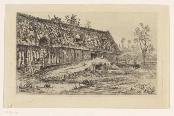 Jerôme Tuyttens made this landscape with farmhouses and a mill, using etching, sometime in the 19th century. The scene appears picturesque, yet it invites us to reflect on the social conditions of rural life in the 19th century. Tuyttens carefully composes the image with the road and the farmhouse on the left, a compositional technique that evokes a sense of depth and perspective. In Dutch and Flemish art, landscapes were often imbued with cultural and historical associations. Consider the impact of industrialization and urbanization on rural communities during this time. Did the artist intend to depict the countryside as idyllic, or perhaps to highlight the challenges faced by farmers and rural populations? As historians, we can explore agricultural practices, land ownership, and social hierarchies to gain a deeper understanding of the social context of the work. By investigating the broader social and institutional context of the landscape, we gain insight into the public role of art as a representation of social life.