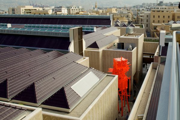 Curator: Today we are observing "Gate", a sculpture crafted in 1969 by Isamu Noguchi. It's quite a striking work in terms of public art. What are your initial impressions? Editor: Monumental is my first thought. Its size makes it imposing, a clear architectural statement using simple geometric shapes, predominantly linear. I am also drawn to the juxtaposition of colours—the arresting vermillion playing against the stark, grounding black. Curator: The choice of red and black are intriguing. Consider the gate as an archetypal symbol of transition. The intense red may speak of boldness, or passion associated with entering a new space. But the solid darkness of the opposite pillar complicates this notion. Editor: I see your point. The black indeed feels like an anchor, possibly representing the past, or even the unknown we face when we go through such symbolic gateways. Perhaps it even embodies subconscious reservations about change itself. Curator: Indeed, a liminal space that also acts as a statement in negative form—by obstructing one's view through architecture. Looking closer, the very shape of the gate resembles an unfinished square or even a stylized 'L'. It's more an implied entrance than a true one, it almost toys with expectations. Editor: Or an artistic commentary on boundaries, no? On the barriers erected by the architecture itself? It could also symbolize an opening that demands effort from the viewer—we must imagine the missing line, or consciously decide which space to inhabit inside this visual field. Curator: An excellent reading! Now that you point it out, the gate, when combined with building, evokes a sense of continuous structure. The shapes play off the linear arrangement, causing both alignment and disruption simultaneously within their planes. Editor: Overall, it is successful because it compels introspection. A physical gate implies entry or exclusion. However, the sculpture opens up many pathways, prompting to reconsider notions about threshold, the conscious act of 'entering' states of awareness itself. Curator: Absolutely, through the sculpture’s use of materials and line, and also with our added symbolic investigation, it achieves resonance that lasts through the ages. Editor: Indeed, I'll carry this perspective along with me after walking around this particular site for a long time to come.