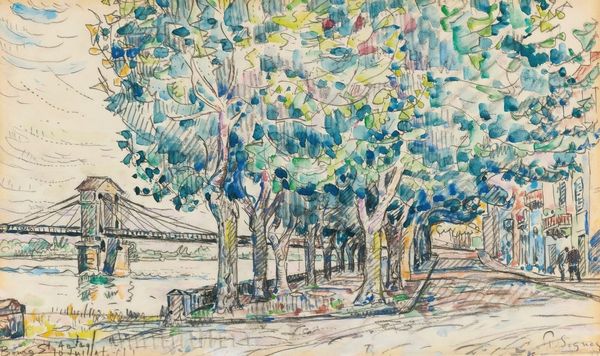 Ernst Ludwig Kirchner made this painting of Wildboden with Kirchner's House using loose strokes and vibrant colour. It feels immediate, like he’s trying to capture a fleeting moment or feeling, you know? Look at how the blue of the river just pops against the greens and yellows. The paint isn’t too thick, but you can still see the marks of the brush, especially in the trees. See that dark green clump of leaves near the center? It’s like a little explosion of energy, anchoring the whole composition. There’s this rawness that reminds me of Van Gogh, but Kirchner brings his own intensity to it. It's like he’s saying, “Here’s what I saw, here’s how I felt.”