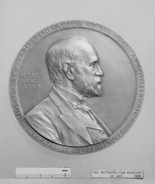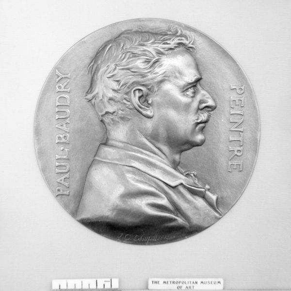 Editor: This is a bronze relief, titled "Léon Joseph Florentin Bonnat (1833–1922), member of the Institute in 1874" by Jules-Clément Chaplain, made in 1890. It looks like a commemorative medallion. What statements about power and identity do you think it makes? Curator: Well, consider the context. This piece commemorates Bonnat, a member of the Institute. The "Institute" signifies a concentration of intellectual and artistic authority in late 19th-century France. So, it’s not merely a portrait; it's a statement about belonging to an exclusive circle and the power dynamics within artistic institutions. It also immortalizes Bonnat within that system. Does it strike you as a critical or celebratory portrayal? Editor: It feels pretty celebratory. I mean, look at the neoclassical style—very dignified and الرسمي. Was it common to produce these for artists? Curator: Absolutely. But it's essential to consider who got commemorated and why. What values were being upheld by these official portrayals? Was it technical skill, allegiance to a certain style, social connections? Who was being excluded and why? Think about gender and race – how often are women and people of color given this kind of "immortality" in art? Editor: That's a great point. It's not just about celebrating Bonnat as an artist, but reinforcing a specific, very exclusive, artistic and social order. I see the medal now as less of a celebration of artistic talent and more a celebration of the art establishment. Curator: Precisely. These types of pieces offer insight into the socio-political structures of the art world and their lasting impact on whose stories get told and whose are ignored. Recognizing these visual power dynamics challenges the singular, often exclusionary, art historical canon. Editor: Thank you! It is very clear how even something that initially seems just a “portrait” can actually embody deeper and more complicated aspects of society.