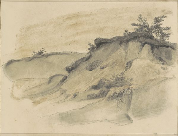 Julius Jacob the Elder rendered this study of the Roman countryside with chalk and graphite on paper. The rough texture of the paper lends a tactile quality to the rocky outcrops and sparse vegetation, typical of the region. Jacob's mark-making is economical. Hatching and cross-hatching define the play of light and shadow on the rocks, while loose, gestural lines suggest the vastness of the landscape. The brown paper shows through, unifying the composition and creating a warm, earthy tone. The artist's choice of humble materials reflects a direct engagement with the landscape. This drawing is not about virtuosity; it's about observation. The immediacy of the chalk and graphite allows Jacob to capture the essence of the Roman countryside with a sense of authenticity. He shows us that beauty is not always found in the grandiose, but also in the understated elegance of a simple drawing, skillfully rendered. It challenges us to see the value in the everyday.