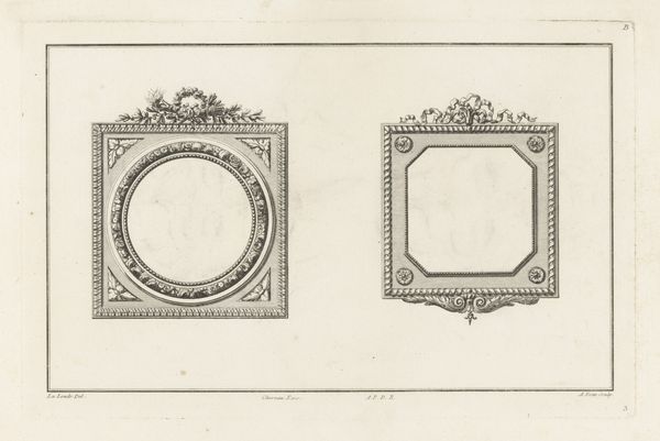 This is Sir William Chambers' 'Design for Three Stucco Frames', made with pen and grey ink and grey wash. It features a study of rectangular frames, each adorned with intricate stucco decorations and set against a neutral grey background. The precise lines and balanced composition demonstrate Chamber's neoclassical sensibilities. Notice how the design achieves a play between ornamentation and structure. The borders contain motifs like stylized leaves, geometric patterns, and neoclassical elements. Each frame projects a distinct visual weight through the density and arrangement of its decorative elements. Chambers was deeply influenced by classical architecture and design. He applies classical principles to redefine interior spaces. This meticulousness invites us to consider how architectural elements affect our perception and experience of space, both physically and aesthetically. Ultimately, the drawing offers a glimpse into the architectural discourse of Chambers' era, where design served to negotiate the relationship between form, function, and cultural meaning.