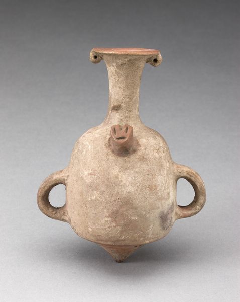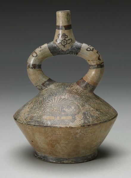 This is a blackware jar, made by an artist of the Chimú-Inca culture. It depicts a figure holding a drum and carrying a child. The Chimú people were conquered by the Inca in the late 15th century, and this jar reflects that blending of cultures. The figure's attire and the jar's overall form are characteristic of Chimú art, yet the presence of the child evokes the Inca reverence for familial continuity. The drum, meanwhile, suggests the importance of music and rhythm in ritual and daily life. What I find compelling is the intimacy captured here. The bond between parent and child is universally understood. It transcends cultural boundaries, even as the specifics of dress and adornment root the image in a particular time and place. This jar isn't just an artifact; it’s a vessel carrying stories of identity, kinship, and cultural resilience.